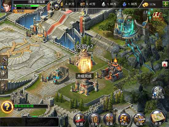 攻城成功後,就是百廢待興了。玩家需要開始在城內選擇地塊,建造不同的建築。《英雄文明》的建築物都帶有濃厚的西式魔幻風格,確實讓人眼前壹亮。然後系統會壹步步地指引玩家建城、升級、打野怪、收取資源等等。起初的這個過程可能會有點枯燥,但是SLG向來都是慢熱的遊戲類型,漸漸上手之後,就能發現《英雄文明》有很多可玩的點。