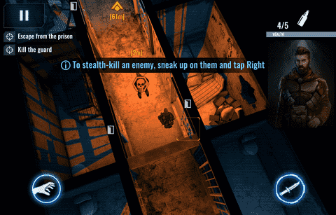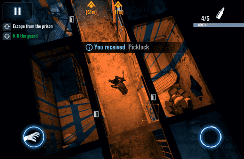 遊戲中的操作還是非常間單的,雙搖桿的控制方式讓玩家可以輕松的對我們的主角進行操控,要知道在潛入類遊戲中對於操作的準確度要求還是比較高的,稍有不慎就會被敵人發現,最後導致任務失敗。左搖桿負責控制角色的移動,而右搖桿則負責攻擊。遊戲中的武器系統還是非常豐富的,當然了在槍械上會有消聲器,不然壹開槍就有可能被發現,而另外還有煙霧彈、閃光彈等等配件,善於利用這些武器可以讓玩家在面對敵人的時候能夠悄無聲息的將他們擊倒。