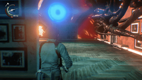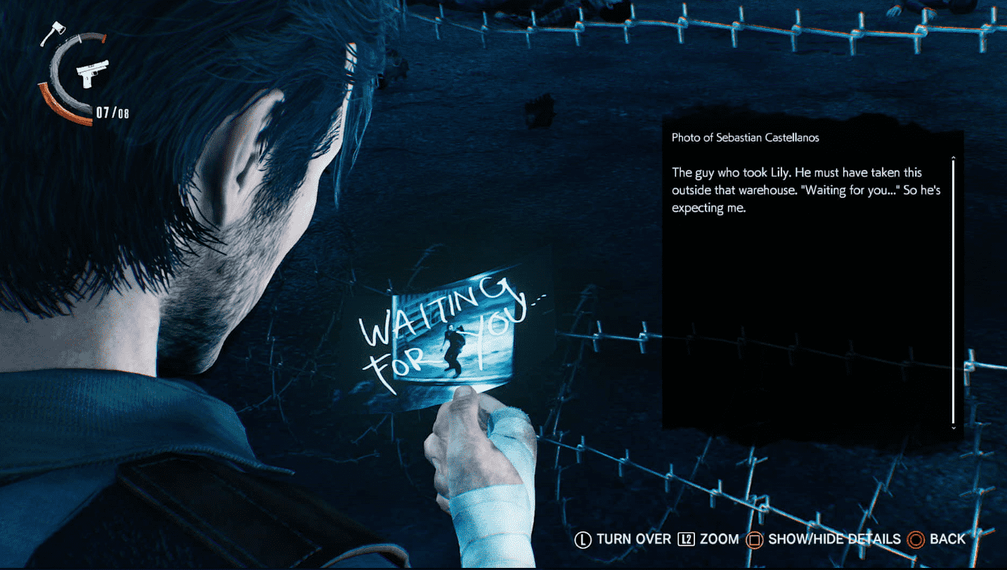 Sebastian can return to the safe haven of his mind to upgrade weapons and skills, and review case files and intel on various characters. With the Green Gel collected from fallen enemies–and the new Red Gel that unlocks upper tier upgrades–the core upgrading system has been greatly improved. Going beyond simply increasing damage of melee strikes and stamina length, new special perks can be unlocked such as the ever-useful Bottle Break skill that uses bottles as self-defense items when grabbed by enemies. Along with the expanded weapon upgrade system, using only weapon parts, the systems of progression feel far more nuanced and open.
