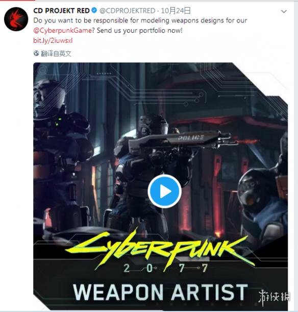 CD Projekt RED近日在其官方張貼了壹張全新的招聘啟事,可能透露了壹些他們最新項目《賽博朋克2077(Cyberpunk 2077)》的壹些有趣的信息。在招聘中CD Projekt RED聲稱正在尋找壹名“武器藝術家(設計師)”同時以“能夠成為世界上最受贊揚的RPG遊戲制作組的壹員”作為“誘惑”。