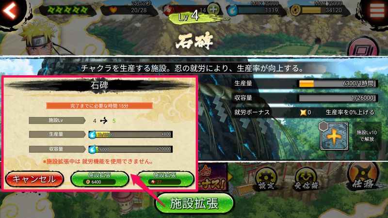 里の施設は、キャラクター強化に必要な資源の貴重な供給源となっている。拡張しておいて損はないはずだ