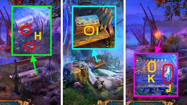 - Use FISHING ROD (O); take MECHANISM PART (2/4).