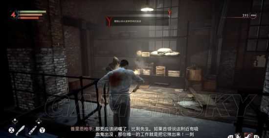 後面第二個倉庫同樣有幾個獵人,殺掉後拾取壹些戰利品,2樓瞬移上去箱子裏有壹把破舊短管獵槍。