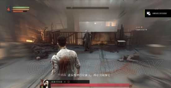 1樓倉庫門外2個敵人,開啟感知模式可以看到敵人的抗性弱點,針對弱點用相對應的武器或技能能造成更大傷害。
