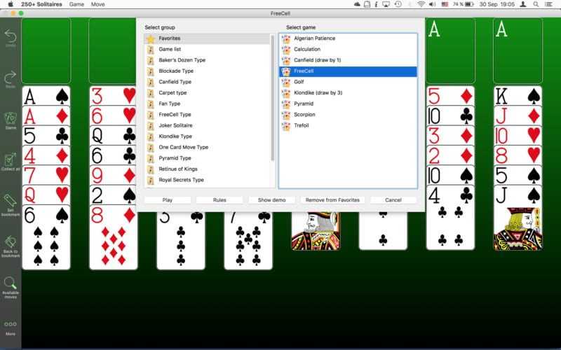 The collection contains favorite solitaire games such as Freecell, Klondike, Canfield, and others, as well as a lot of original games. The list of solitaire games contains about 15 patience types. They are Scorpion, Joker Type, Pyramid patience, Blockade, Carpet Type and so on. You can play popular solitaire games like Algerian patience, Golf patience, Yukon solitaire, solitaire Royal Secrets. Use search to find a patience you love, i.e. Solitaire New York, patience deluxe, Solitaire classic, tri-peaks and others. Then choose your ultimate solitaire, add it to Favorites and get quick access to favorite patience card games free.