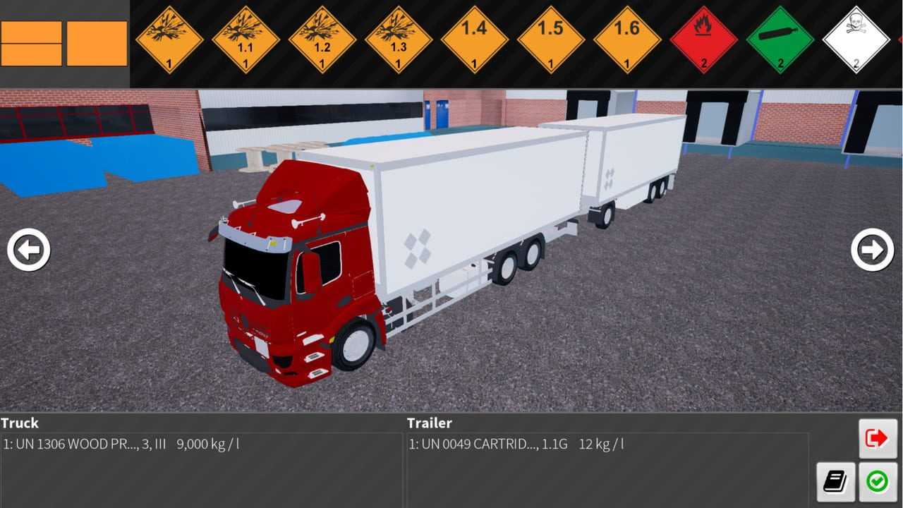 ADR-Labelling teaches the players the basics of markings dangerous goods transport vehicles. Players can either place the markings on pre-made cargo or load the vehicles themselves. Once the cargo has been selected player is tasked to place all the correct orange plates and ADR labels on the vehicle. Game is designed to give additional support and an interactive training platform for people studying for their ADR license.