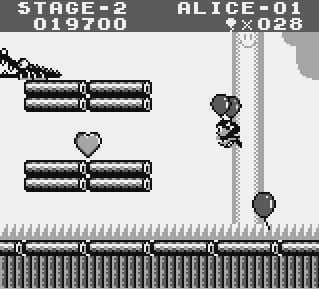 Take to the skies with Balloon Kid. You’ll have to think light as you float across the most unfriendly skies around. Nasty flying creatures will test your piloting skills, but don’t go too low because even nastier enemies await you on the ground. Get extra bonuses by gathering all the balloons you can for a series of challenging tests of skill. Take a big gulp of courage and give Alice a hand as she searches for her missing brother. Play alone or use your Video Link cable to race against a friend. Either way, Balloon Kid will give you a lift.