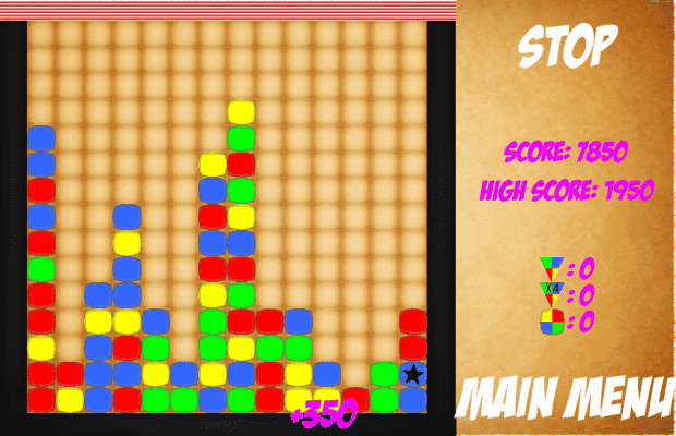 Block Crusher game is a fun, classic and addctive game where your only goal is to destroy as many blocks as possible. Over time, lines fill up and it keeps getting faster and faster for the Medium and hard level only. If your screen fills, the game is over. The game has 3 different levels: Easy, Medium and Hard. Each block destroyed will give +50 score points. There is also a bonus if you destroy a big amount of blocks at the same time (For example: 8 blocks destroyed -> +300 score points). There are also special items that you can collect from destroying blocks who have a star on them. There are three types of special items: First breaks all the blocks in the first row, second breaks all the blocks in the first 4 rows and the third one removes all the blocks having a randomly generated color.