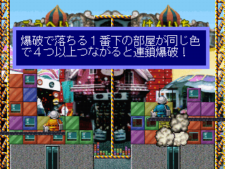 chains with the falling blocks that match up. There are several bomb power-ups