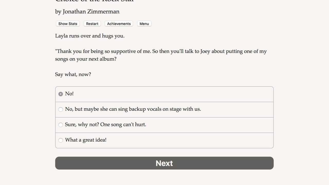 | Game Analysis | Provided that you have at least an NVIDIA GeForce 510 graphics card you can play the game. Choice of the Rock Star system requirements state that you will need at least 4 GB of RAM. To play Choice of the Rock Star you will need a minimum CPU equivalent to an Intel Core 2 Duo E8400. Choice of the Rock Star will run on PC system with Windows 7 and upwards. Additionally it has Mac and Linux versions. | |