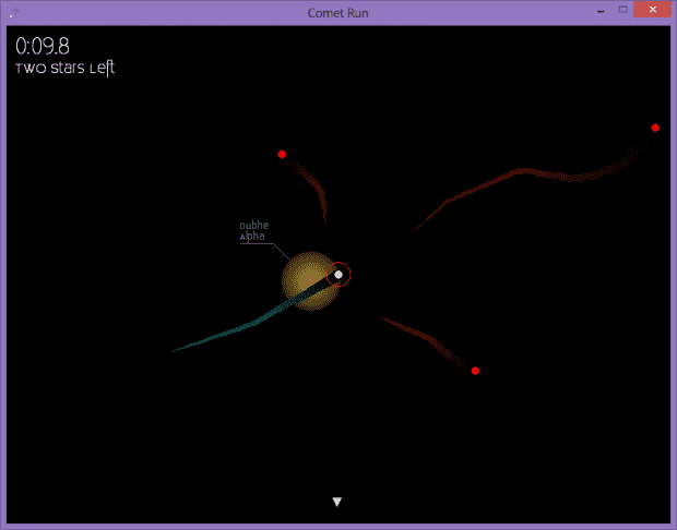 With your mouse you control a comet that has to pick up loot from stars and bring it to other stars. But you only have 10 seconds to do this, unless you move over the stars, which act as checkpoints to refill your timer. Each loot item has a value that decreases if you are carrying it longer. Try to make as much money in the least time. The game was originally made for the Ludum Dare game jam, but is currently being ported to Java and OpenGL. The current version could be laggy, so stay tuned for updates!