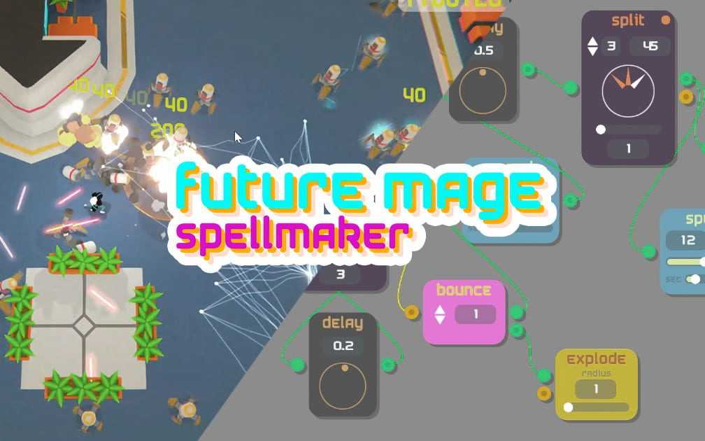 To your help you have a Spell Editor where you connect so-called “Nodes” with different properties that will influence how your spells will behave. Make them good, make them weird, make them amazing–it’s all up to you!