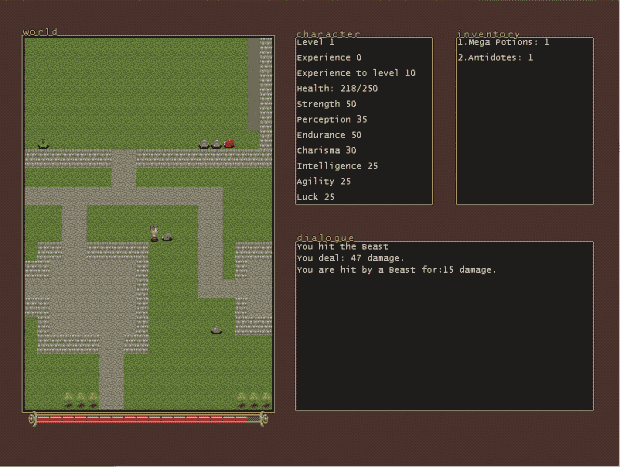 A simple rpg engine which ships with it’s own game demonstrating what it is capable of. The ultimate goal of the project is to create an environment for easily making custom rpgs with nothing more than a text editor and image program (e.g. notepad and paint).