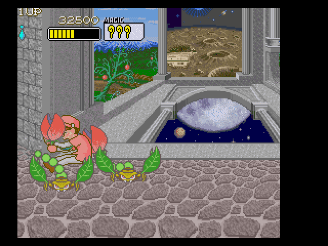 the many wacky enemies with his stick and a few magic spells that are randomly