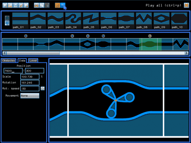 There’s also obstacles on your path. Like the borders track, one hit equal defeat. They can be static, rotating or moving.