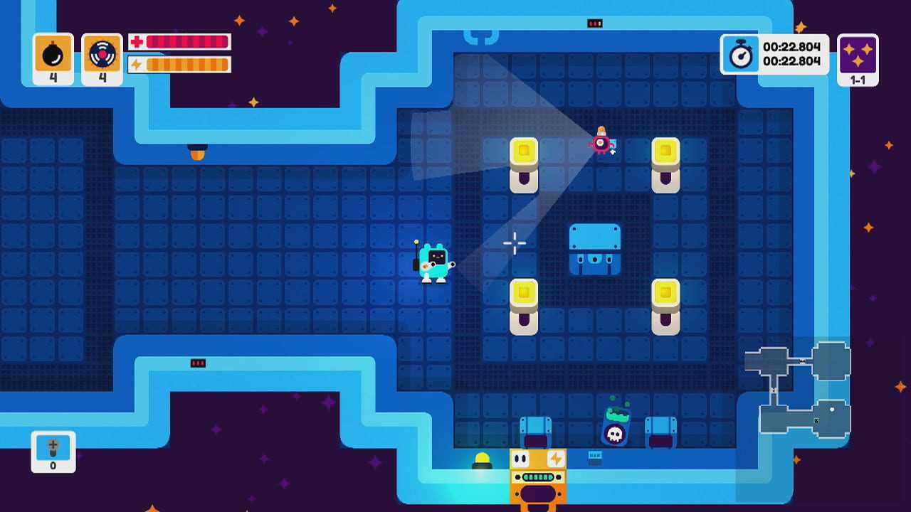 SOCKETEER is a frantic randomly generated top-down shooter where you play as a small robot that cannot shoot. Instead, the main character must hack into any electronic device and utilize it to survive. Take control of defense robots and blast other enemies away, crack into security door control panels and slam them shut on unsuspecting guards, circumvent data consoles and download map information to help navigate to the exit.