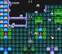 Move fast and blast! It’s a nonstop explosion of fire power and you’re streaking through space, right in the middle of it! The Brains Cult you once defeated is back, badder than ever. But your finger’s on the trigger of an incredible new techno-attack! Scorch the Scorpion with a nuclear a sting. Fire your heat-seeking sidewinders. Then power-up to launch your doomsday Super Bomb! Blow those Brains out and save the galaxy. Then challenge your friends with a special competition time mode to prove who the Super Star really is!