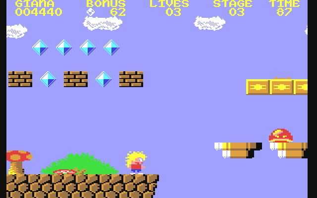 Giana is suffering from a nightmare she has to travel through 32 levels filled with monsters. You are looking for your sister Maria who, after you defeated the final boss, wakes you up from your terrible dream.